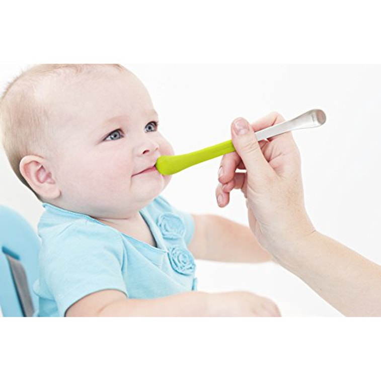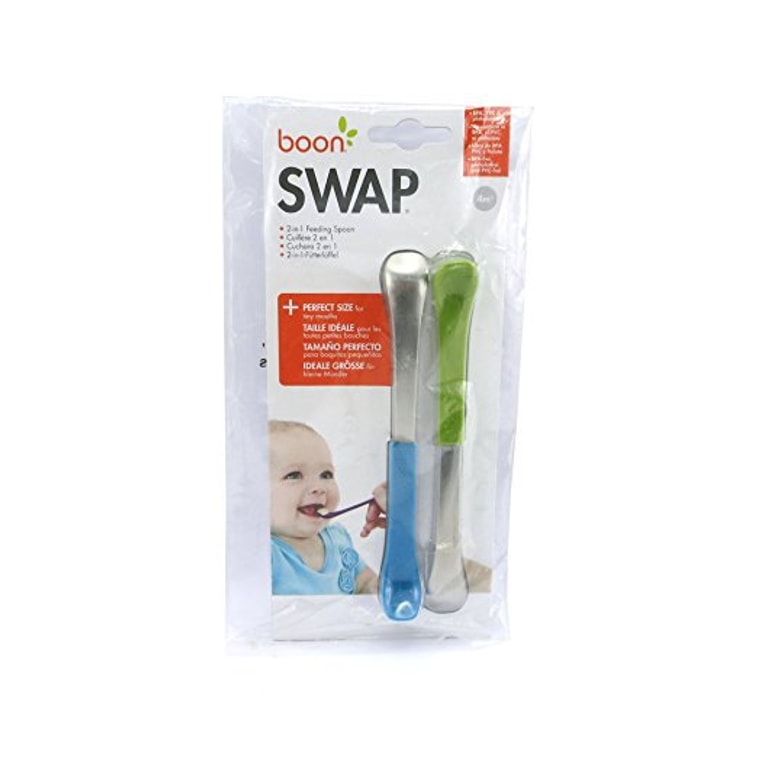 We've got a couple of tips, literally. Swap is a dual-ended spoon with a soft end and a rigid end perfect for first time eaters. (Your baby will let you know which side of the spoon works best.) Both sides have a flat tip perfect for wiping off the food that inevitably ends up all over your baby's face.