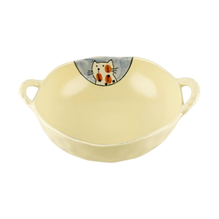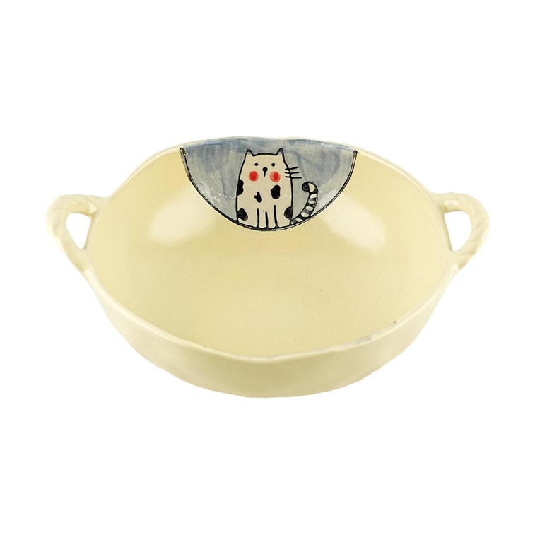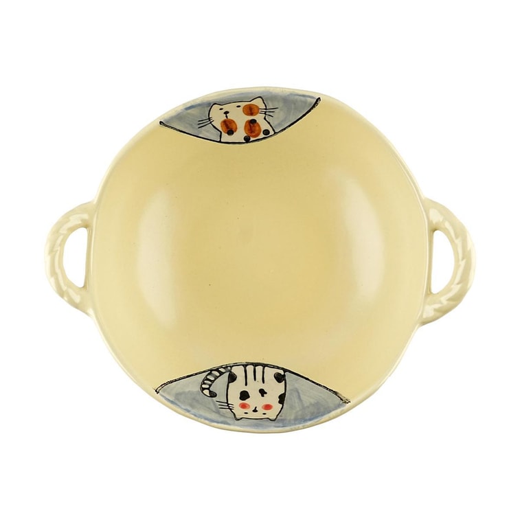 YUJIANNI Ceramic Double-Ear Bowl, Fruit Bowl, Soup Bowl, Small Noodle Bowl, Couple Cat Design with Speckles, 1 Piece, | Yami
