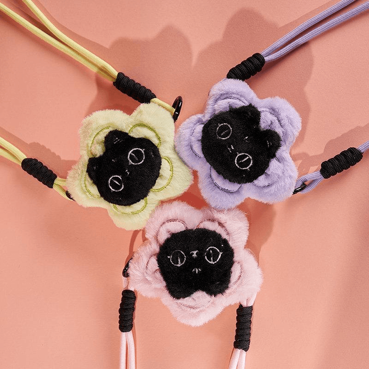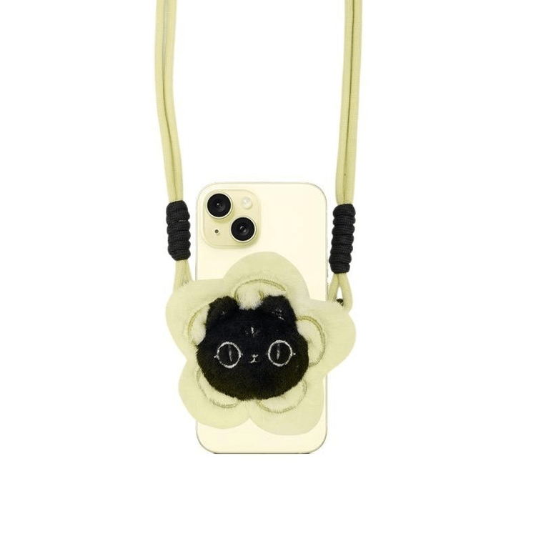 British Museum Creative Cute Cat All The Way Flower Blossoms Crossbody Plush Pendant Phone Back Clip Light Yellow 7 *2cm