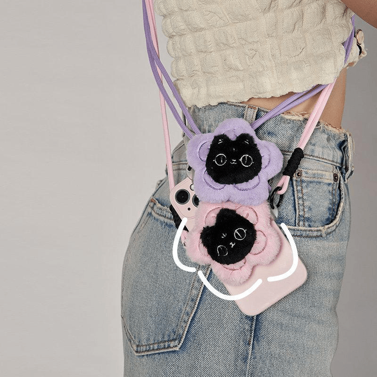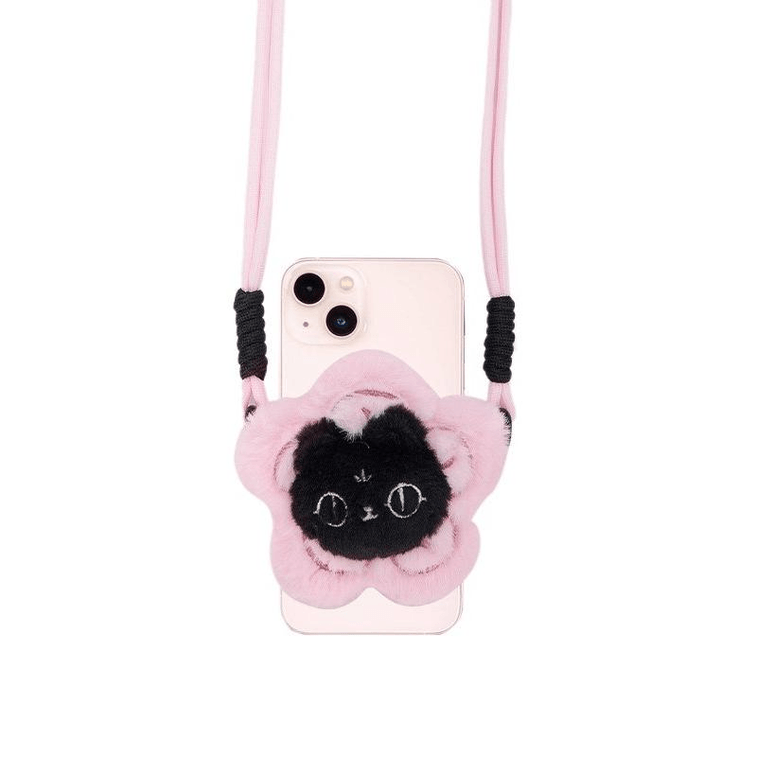 British Museum Creative Cute Cat All The Way Flower Blossoms Crossbody Plush Pendant Phone Back Clip Pink 7 * 2cm*1piece