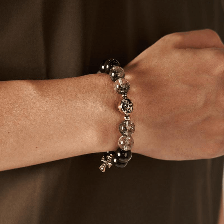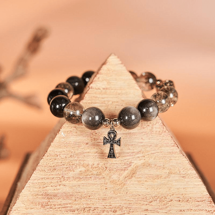 British Museum Creative Eye Of Horus Anka Silver Obsidian Bracelet Men's Hand Bracelet 16.5cm * 1 Piece