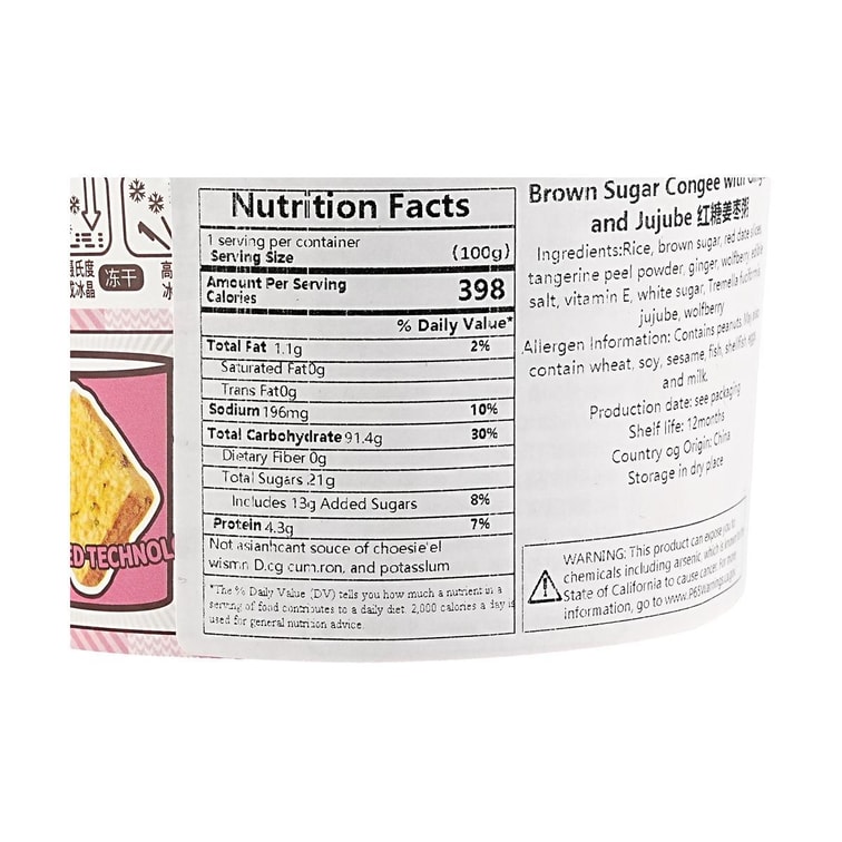| Flavor | Brown Sugar Ginger Date Porridge |