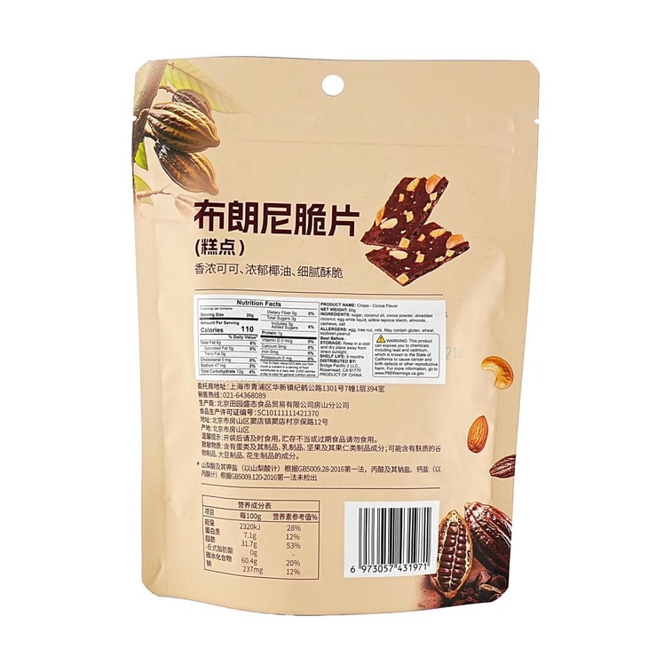 Brownie Crisps Cocoa Flavor,Chocolate Nut Crackers, 2.11 oz【Non-Fried And Non-Expanded】