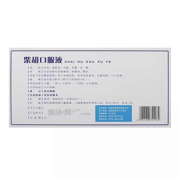 Bupleurum Oral Liquid Is Used For External Fever Symptoms Hot Face Red Headache Dry Mouth And Thirst 10ml*10 Pieces