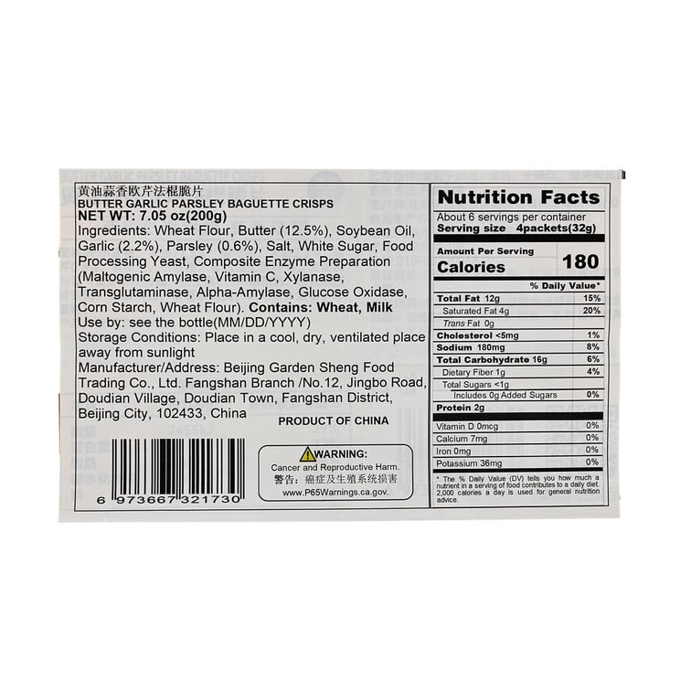 Butter Garlic Parsley Baguette Crisps, Bread Biscuits,7 oz *3【3 Packs】