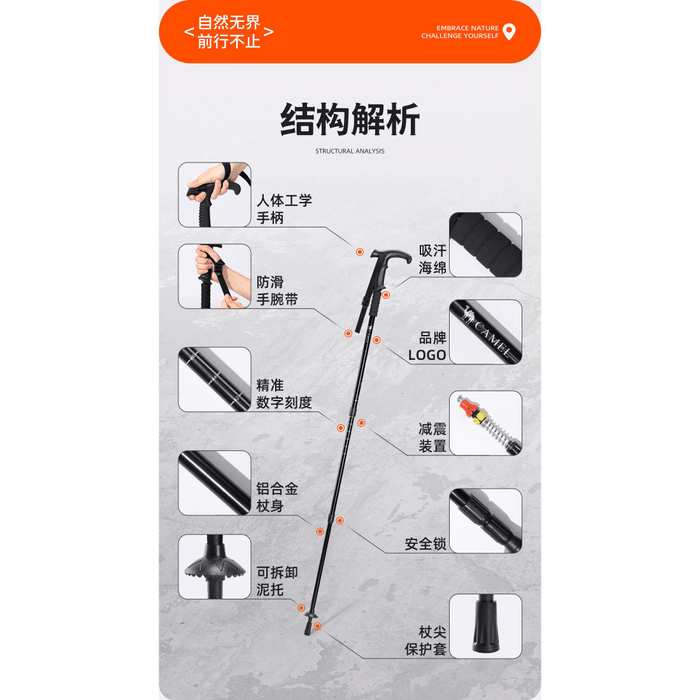 Camel Mountain Professional Outdoor Mountaineering Staff Aluminum Alloy Black/Piece | Yami