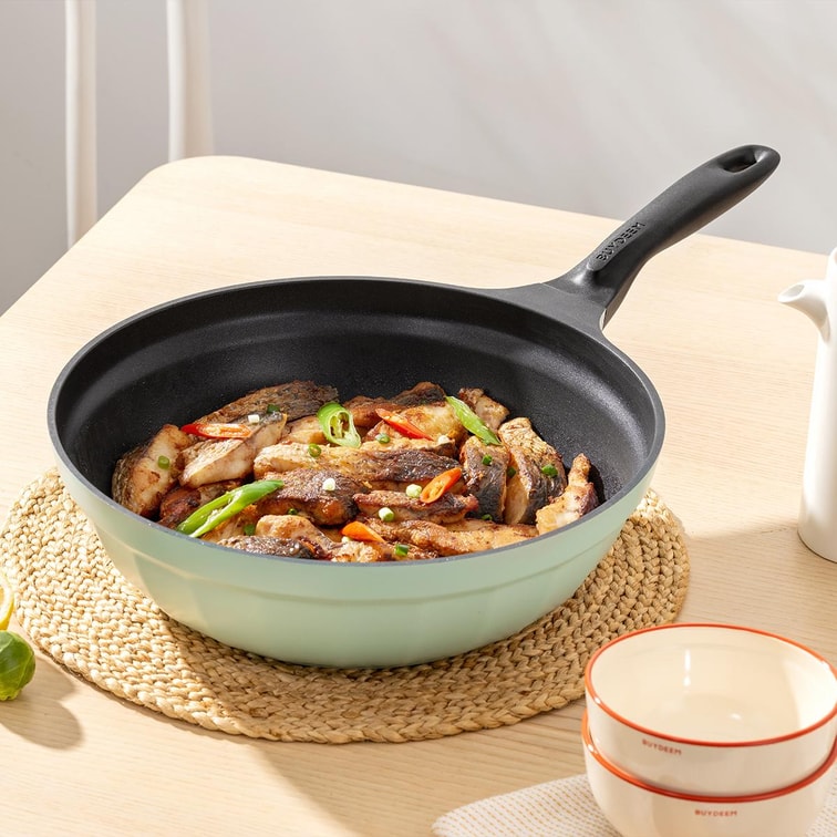 BUYDEEM Non-Stick Flat Frying Pan 30cm Cozy Greenish