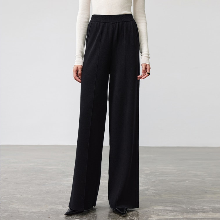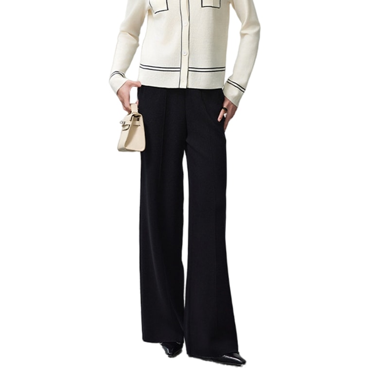 Casual Versatile High-Waisted Loose-Fit Trousers, Premium Drape Straight-Leg Wool Casual Pants Black M