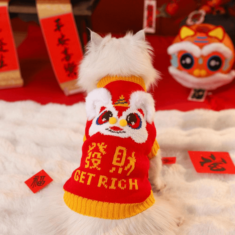 Huayuan Chong Furniture Cat Clothing Winter Lion Dance Sweater - Pullover Style (7-9 lbs) * 1 piece