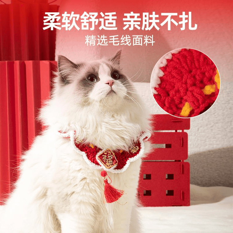 Cat Collar, Scarf, Pet Drool Towel, Fu Character M Size, No More Than 8 Pounds, 22-30cm*1 Piece