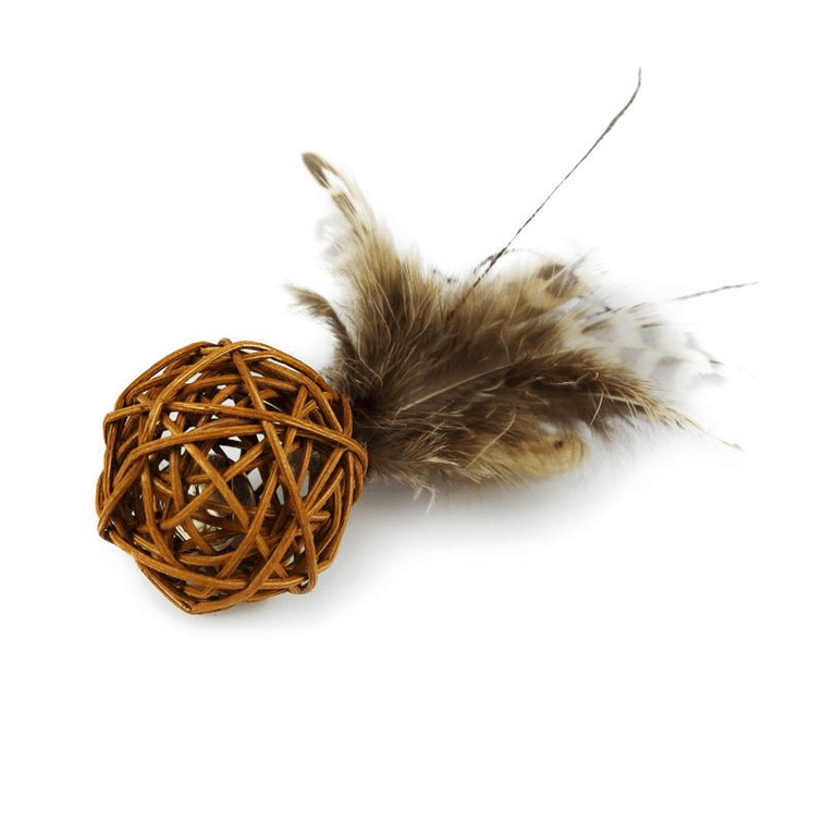 Cat Feather Vine Weaving Ball Cat Toy With Bell Badminton Scratch And Bite Cat Toy, Pet Cat Supplies * 1