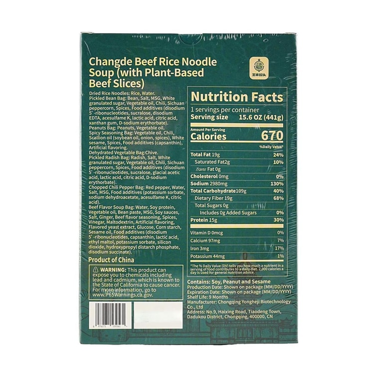 Changde Beef Rice Noodles Soup With Plant - Based Beef Slices,15.6 oz *5【5 Packs】【 Yami Exclusive】