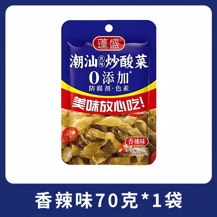 PENGSHENG Chaoshan Style Spicy Stir-fried Pickled Mustard Greens, 0 Additives, No Preservatives/Colors, 70g Pack, For Congee/Fried Rice/Fish Dishes/Meat Stir-fry | Yami
