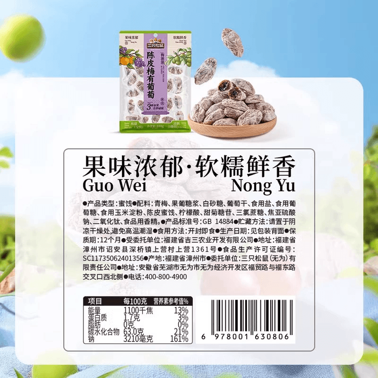 Chenpi Plum with Grape Preserved Fruit Preserved Plum Sweet and Sour Snack 100g * 1 Pack