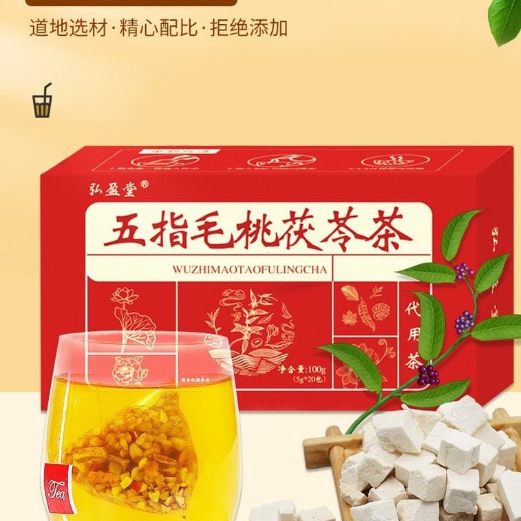China Hongyingtang Five Finger Peach Poria Tea with Poria cocos for Spleen Strengthening Stomach Nourishing Heat Clear