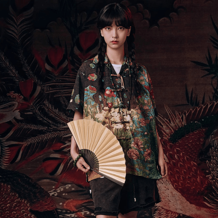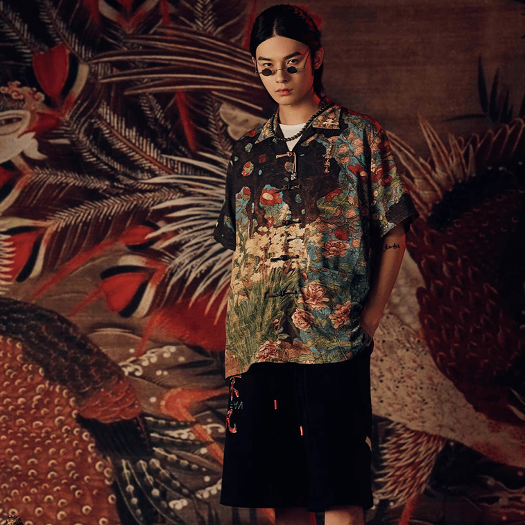 Chinese Style Casual Retro Button Printed Short Sleeve Shirt For Men And WomenXX-Large