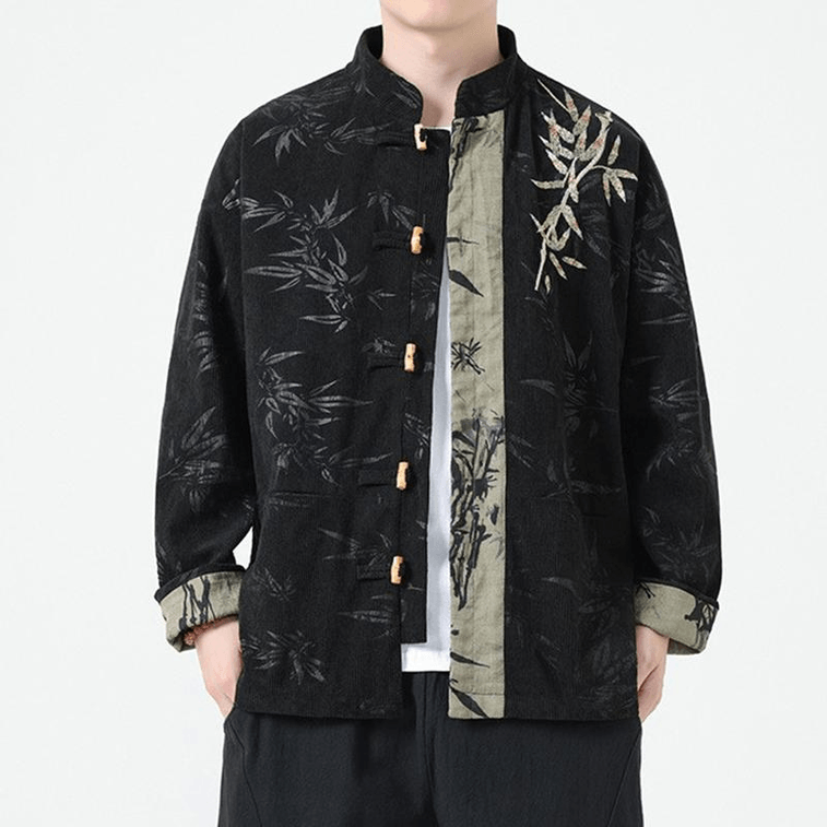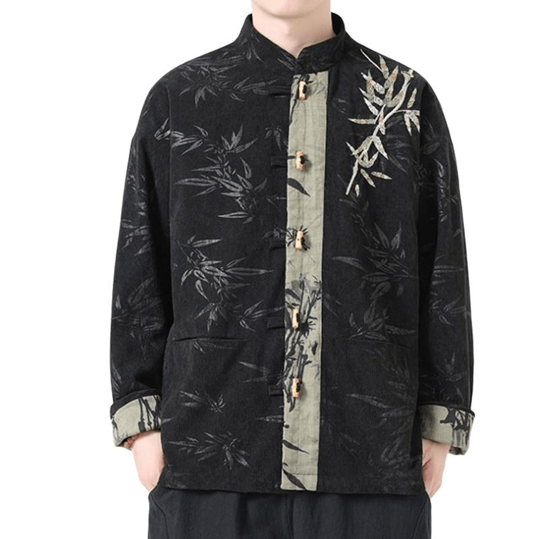 Chinese Style Corduroy Embroidered Retro Button Tang Costume Jackets Black 3XL