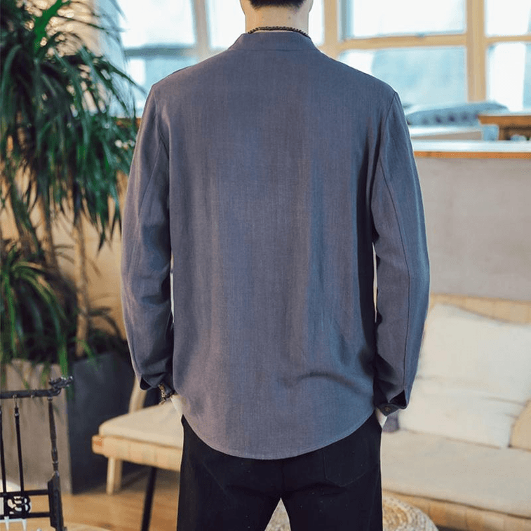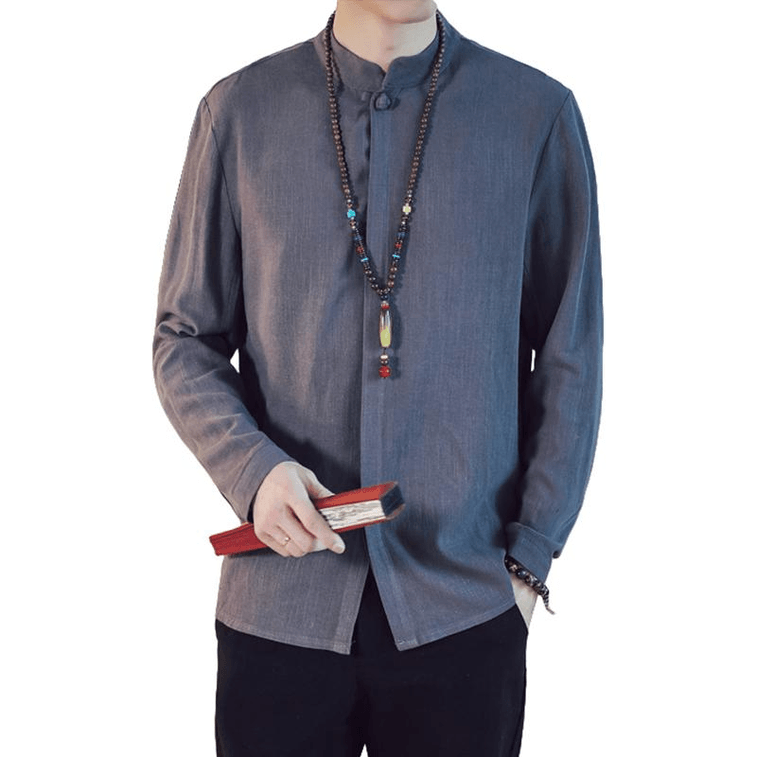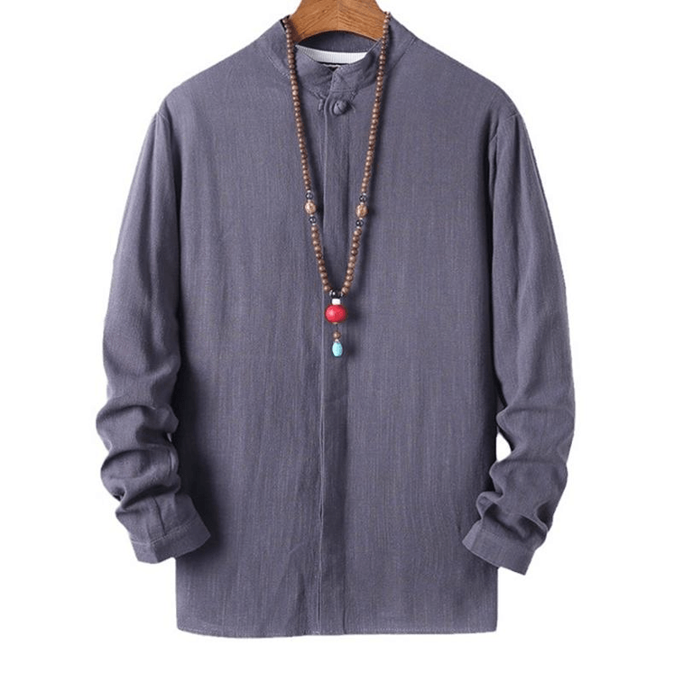 Chinese Style Flax Retro Button Tang Costume Hanfu Shirts Gray Blue 4XL