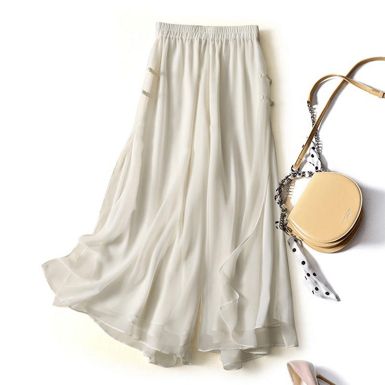 Chinese Style High Waist Knot Button Loose Fit Cropped Wide-leg Pants White M