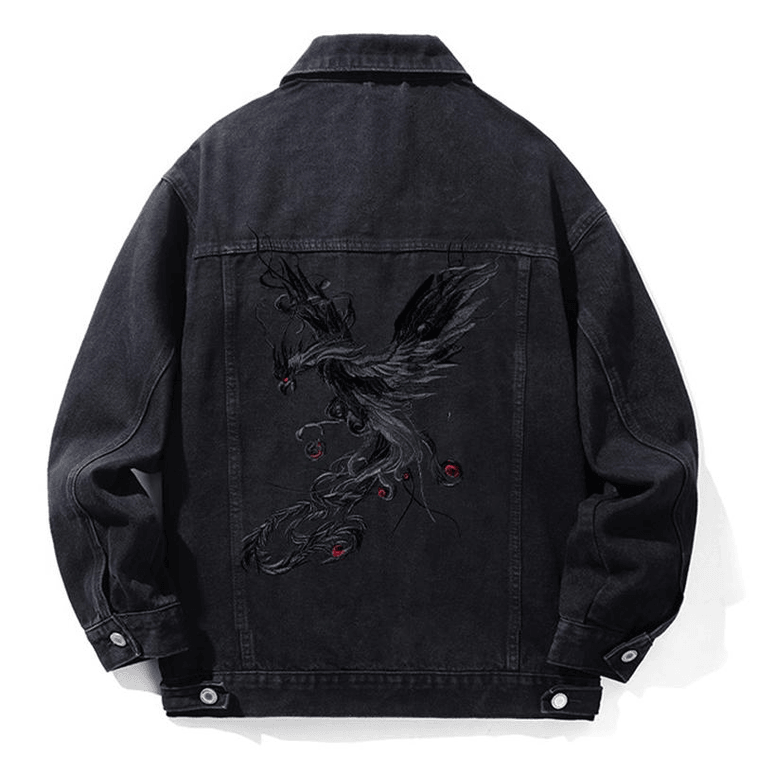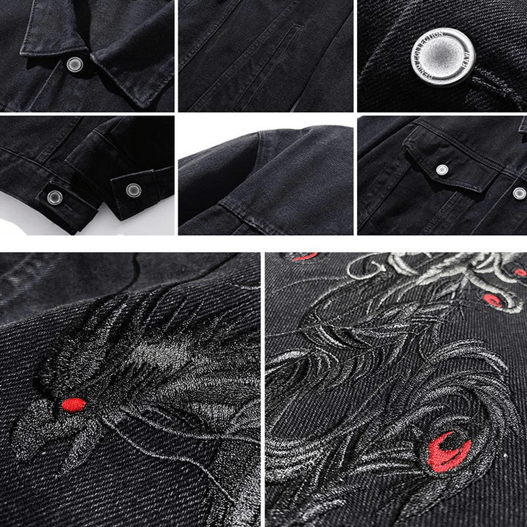 Chinese Style Phoenix Embroidered Casual Denim Jacket 4X-Large