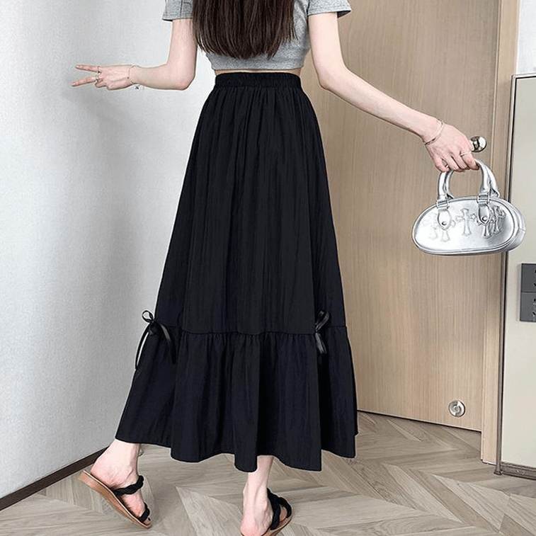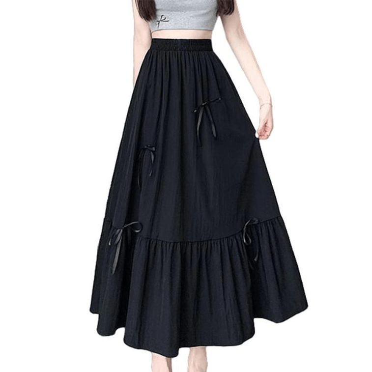 Chinese Style Summer Bow Splicing High Waist Skirts for Women Black S