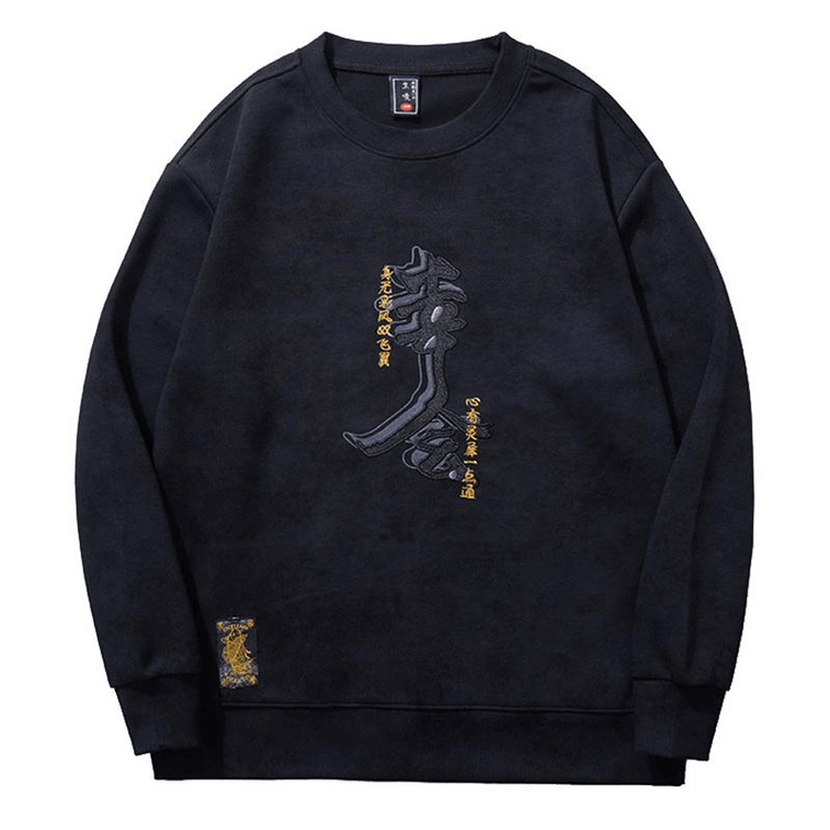 Chinese Style Xinghui Embroidered Loose Long Sleeve Hoodie 2X-Large