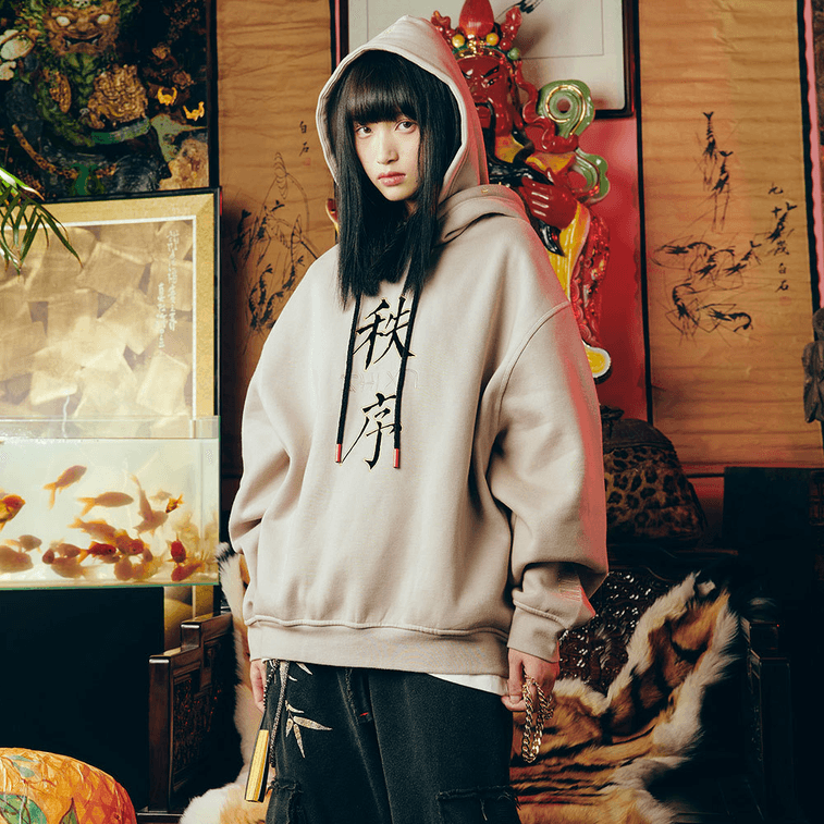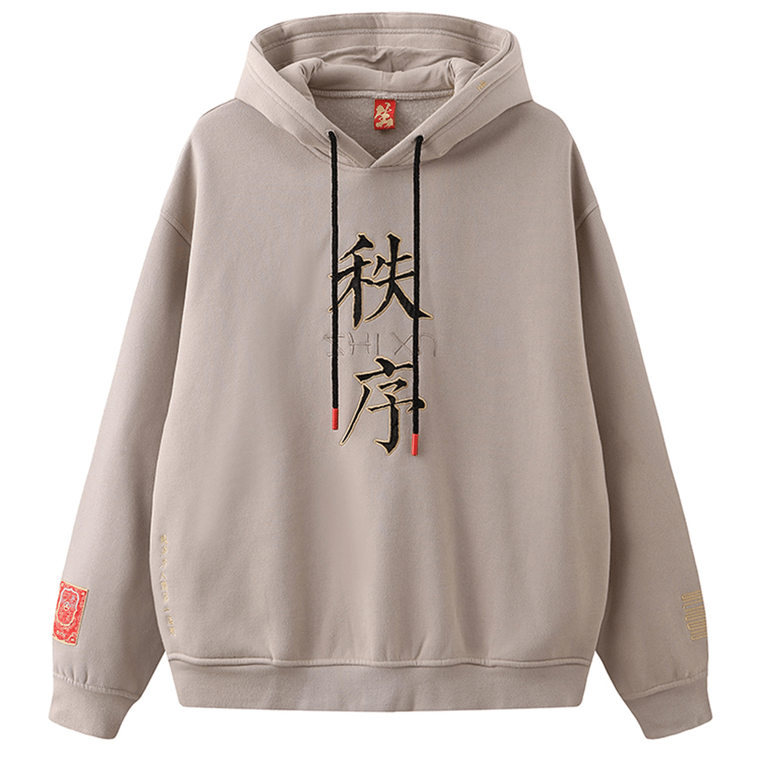 Chinese Style ZHIXU Embroidery Loose Hooded Hoodie For Men Women,Medium
