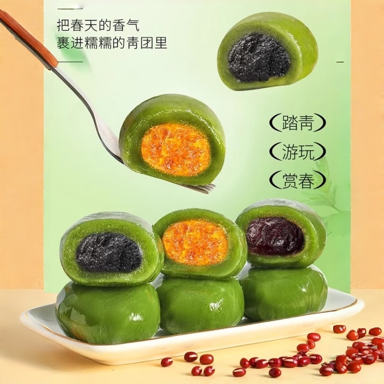 Chinese Traditional Mugwort Glutinous Rice Cakes Red Bean Paste Fragrant Chewy Qingming Pastry 0.57lb | Yami