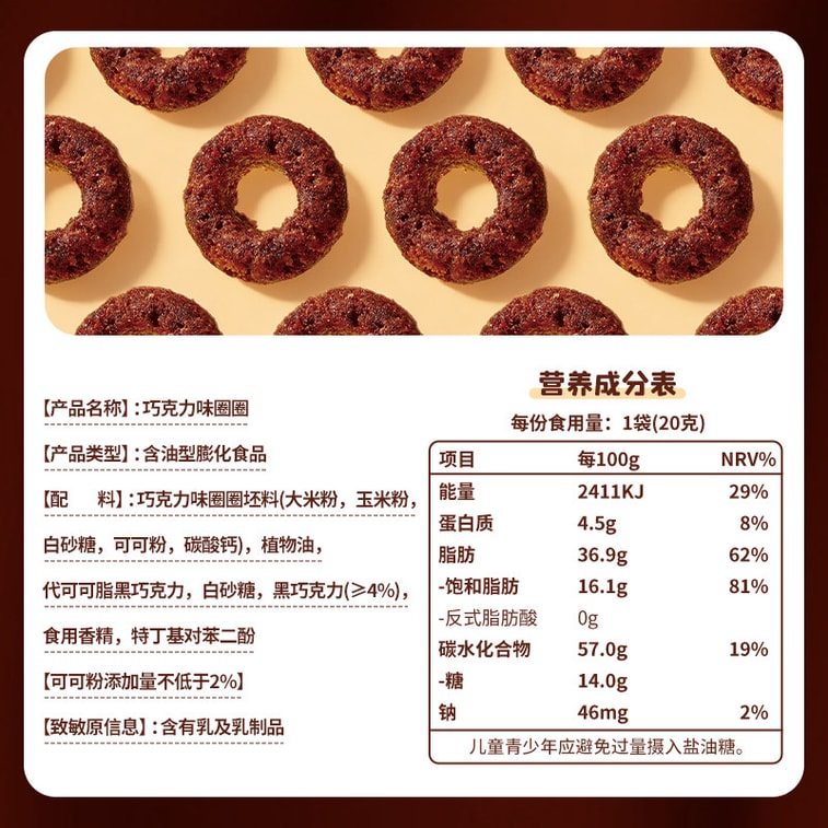 Chocolate-flavored rings, a snack to satisfy cravings, perfect for office afternoon tea, 20g*5 packs | Yami