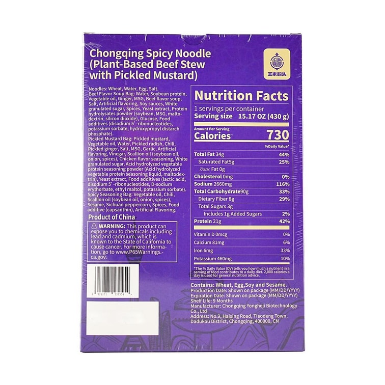 Chongqing Spicy Noodles- Plant -Based Beef Stew With Pickled Mustard ,15.17 oz *5【5 Packs】【 Yami Exclusive】