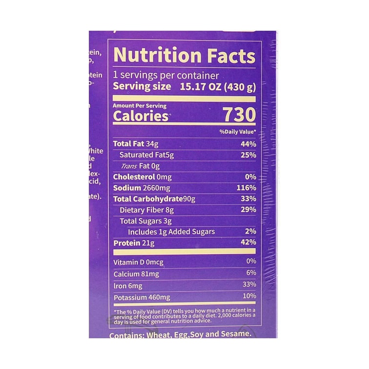 *Disclaimer:Nutrition info is based on product packaging and for reference only. Content may vary due to version, language, or image differences. Please check the actual package. For questions on ingredients, allergens, or suitability, read the label or contact support.