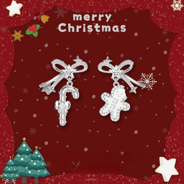 Christmas Earrings Gingerbread Man Christmas Cane Style Silver Needle Style *2 Pieces