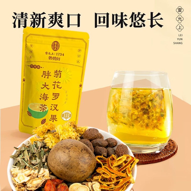 150g Chrysanthemum Lo Han Guo Tea (30 Bags) | Herbal Blend with Monk Fruit & Boat-Fruited Sterculia Seed | Soothe Throat, Relief Hoarseness | For Smokers & Late Nights
