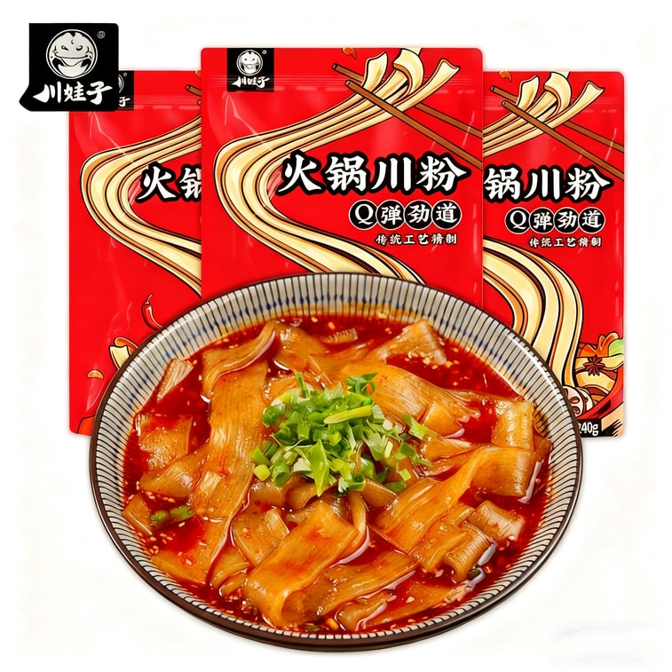 Chuan Wazi Sichuan Hot Pot Wide Noodles, Sichuan Noodles, Sweet Potato Noodles 120g Authentic Sweet Potato Noodles, No Soaking Required, Spicy Hot Pot Ingredients | Yami