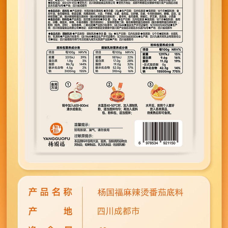 Classic hot spicy dip bottom material is slightly spicy 55g*1 bags.