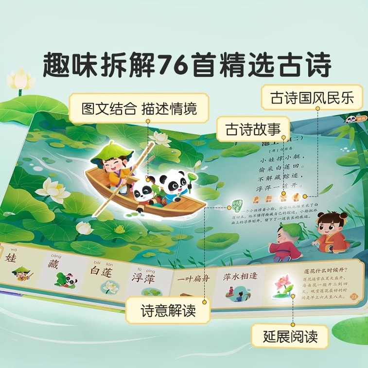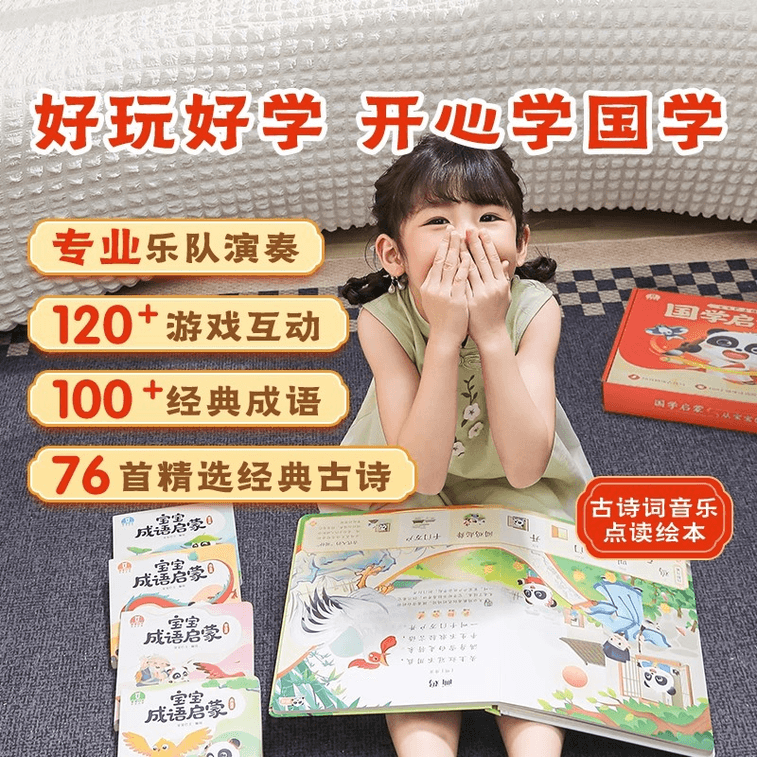 Classical Poetry Music Picture Books 3-4 Year Old Chinese Character Recognition Learning Idioms Point Reading