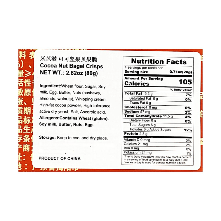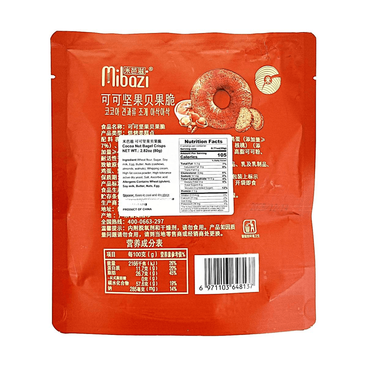 Mibaz Cocoa Nut Bagel Crisps Biscuits, 2.82 oz | Yami
