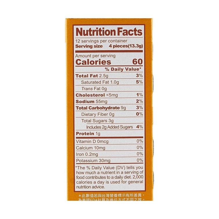 *Disclaimer:Nutrition info is based on product packaging and for reference only. Content may vary due to version, language, or image differences. Please check the actual package. For questions on ingredients, allergens, or suitability, read the label or contact support.