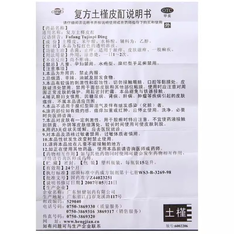 Compound Tugeun-Pi Tincture Antipruritic Bactericidal Treatment Of Athlete'S Foot Itch 15Ml/ Bottle