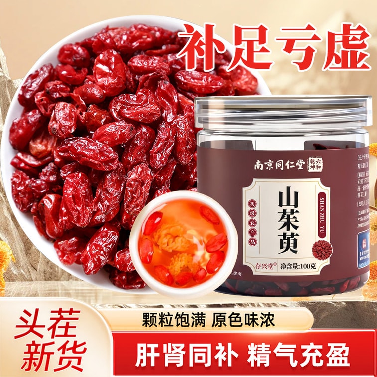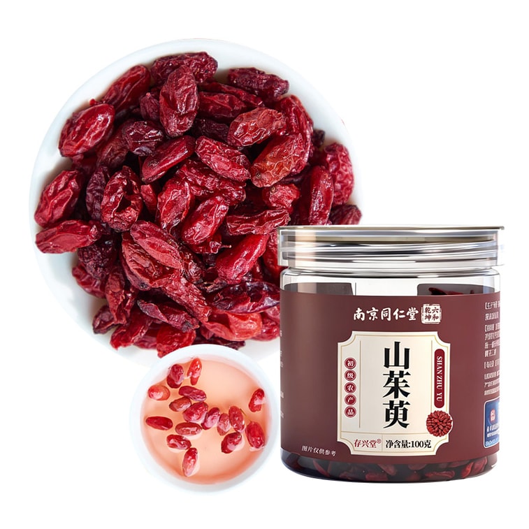 Nanjing Tongrentang Wild First-Harvest Seedless Cornus Officinalis 100g – Sun-Dried, Thick Flesh, Vibrant Red, Plump Kernels, Rich Original Color, No Sulfur, Nourishes Liver & Kidney, Replenishes Vital Essence | Yami