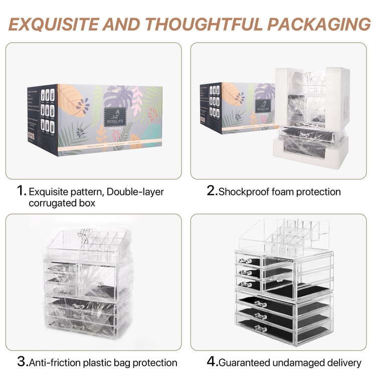 【Cosmetic Storage】[TGC] 3-Layers Acrylic Cosmetic Storage Box with 7 Drawers12+4 Slots Detachable Clear