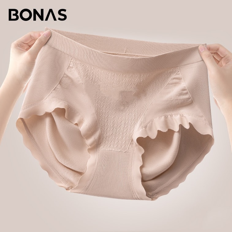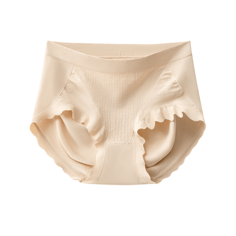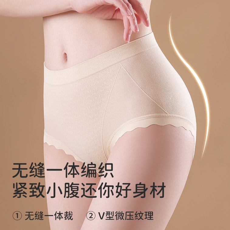 Cotton Seamless Cinched Abdomen Raised Hips Mid Waist Triangle Underwear Skin Color One Size 2 Pcs | Yami