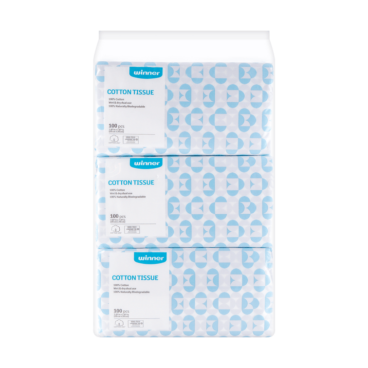 Winner Medical-Enjoy Healthy LifeWinner Large Size Baby Cotton Tissues are made of 100% natural cotton, caring baby's sensitive skin. Application: Baby wipes are ideal for cleaning baby's face, hands, body, and diaper area wiping. Winner baby tissues are in CCI authorized Patented Spunlace Non-Woven Manufacturing Process.
