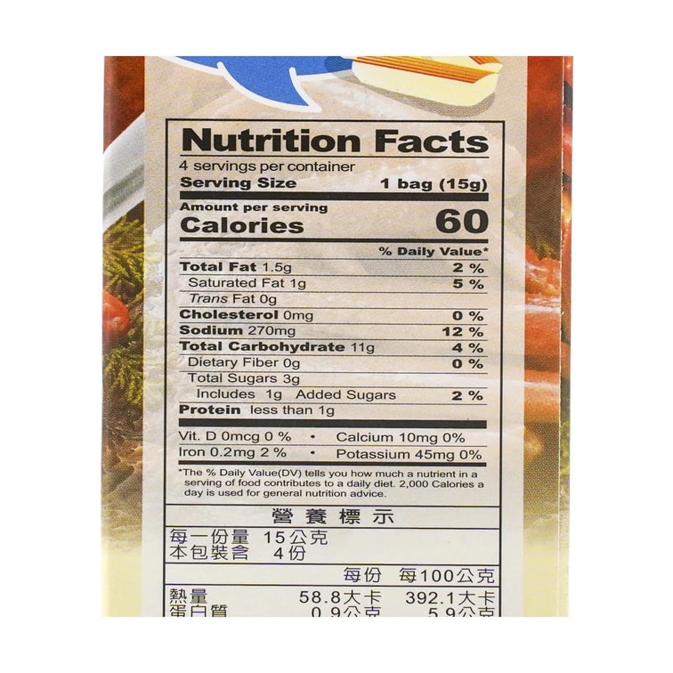 *Disclaimer:Nutrition info is based on product packaging and for reference only. Content may vary due to version, language, or image differences. Please check the actual package. For questions on ingredients, allergens, or suitability, read the label or contact support.