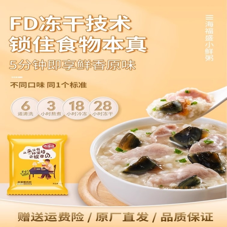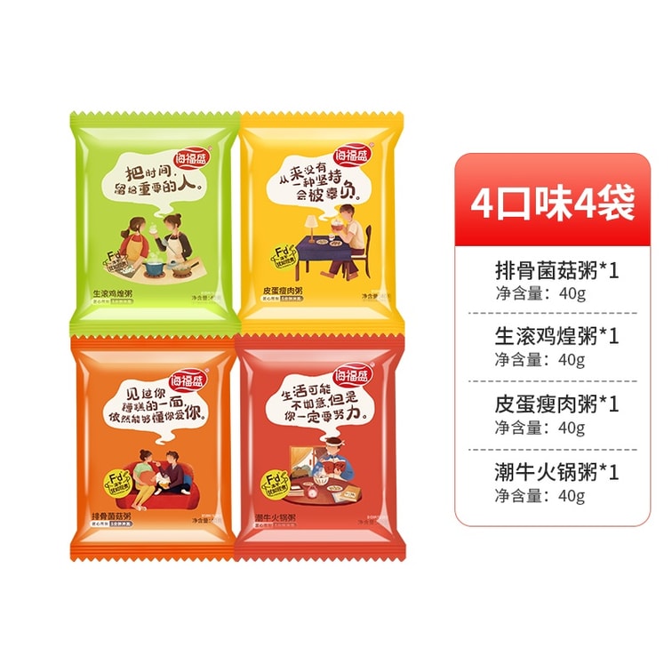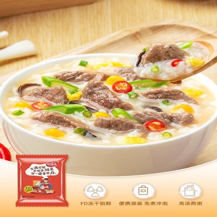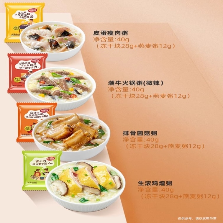 Premium Freeze Dried Instant Congee Variety Pack 4 Flavors Century Egg Lean Pork Rib Mushroom Braised Chicken Beef Hot Pot 0.088lbs*4 Packs