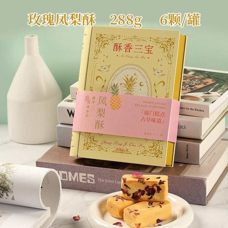 Creative Book Shaped Tin Rose Pineapple Cake Xiamen Specialty 60 Days Short Shelf Life Afternoon Tea Snack 0.63 lb