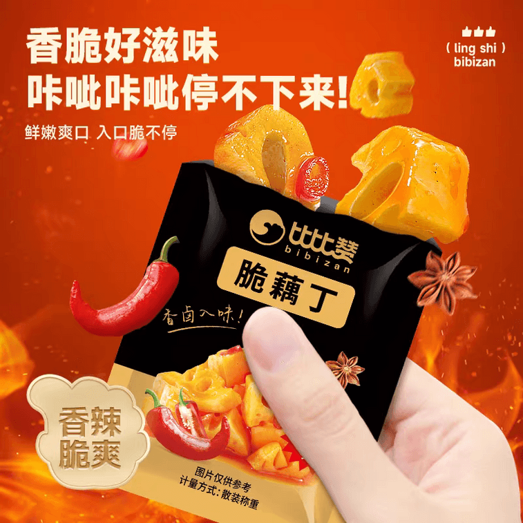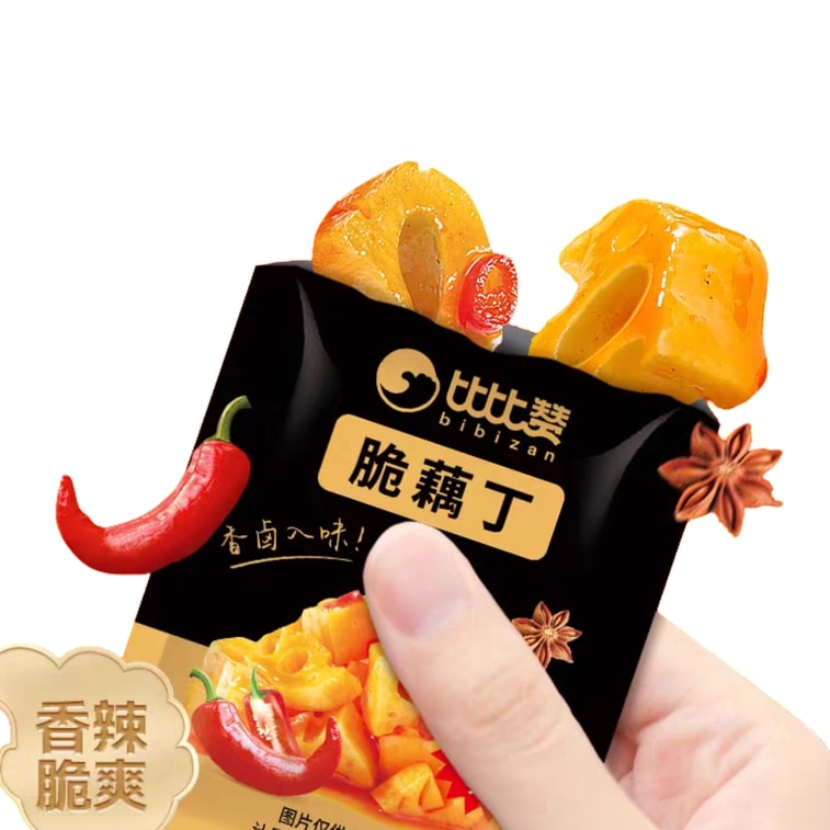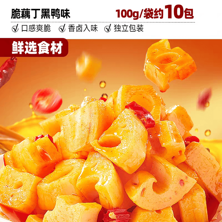 Crispy lotus root cubes and slices, spicy snack, vegetarian, popular instant snack, casual food, black duck flavour, 100g/bag [about 10 small packs]