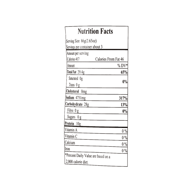*Disclaimer:Nutrition info is based on product packaging and for reference only. Content may vary due to version, language, or image differences. Please check the actual package. For questions on ingredients, allergens, or suitability, read the label or contact support.