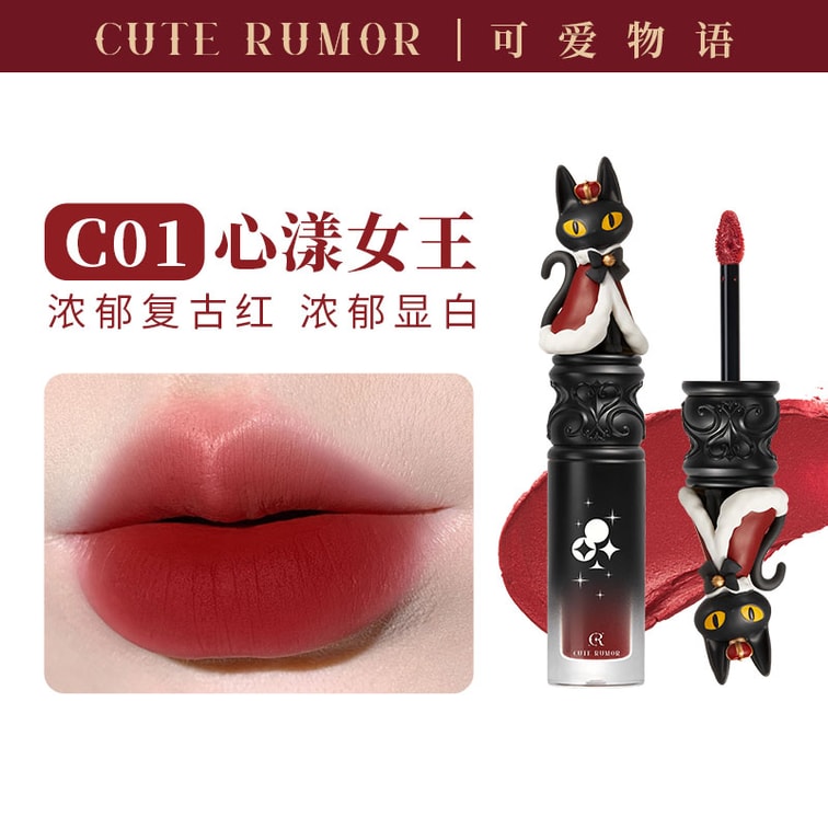 CuteRumor Rabbit Lip Gloss Lipstick Lip Cream #C01 [Traditional retro red white and enhance the complexion]