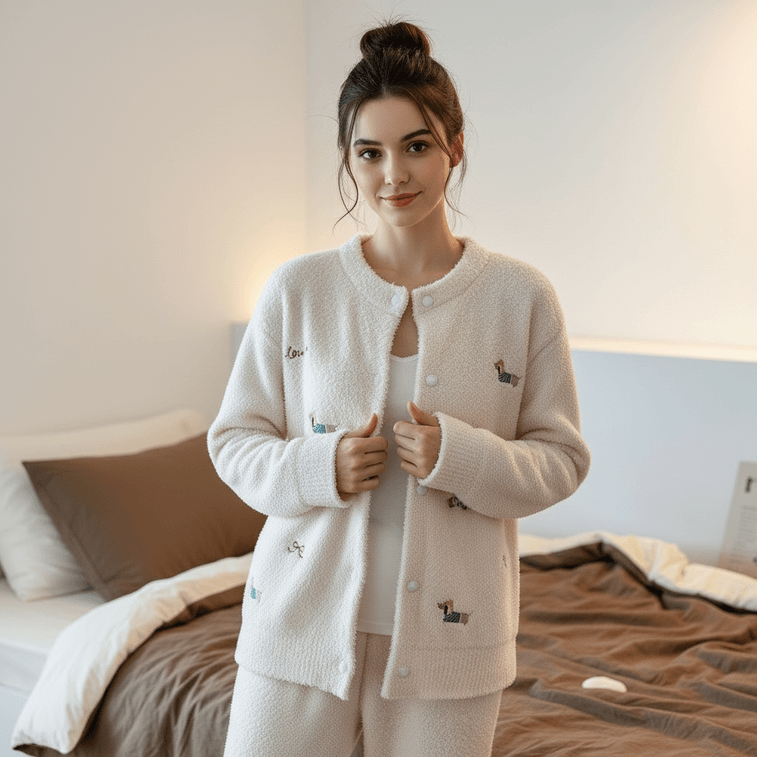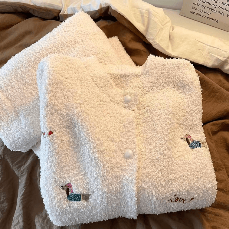 Dachshund Fleece Pajama Set-Pink M Size
